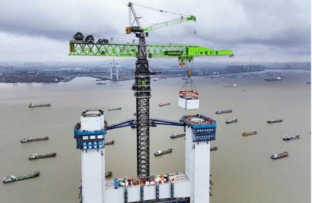 今年以来,粤港澳大湾区重点工程狮子洋通道全面进入建设高峰期。7月29日, 世界最高双层悬索桥——狮子洋大桥东主塔完成T32钢壳节段吊装,至此东、西主塔建设高度均过半,达171.1米,为明年上半年桥塔封顶、项目顺利推进奠定坚实基础。