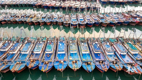 City Life | On September 23, at Zhapo Fishing Port on Hailing Island in Yangjiang, a forest of masts and numerous fishing vessels returned to port. Over 800 boats lay quietly in the harbor under the evening glow, prepared to face the approaching typhoon.#citylife