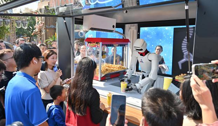 On November 15, the world's first AI robot-operated retail service store, ROBOT MART, officially opened at Zhongshan Joy Land Park. Inside the compact shop, the robot “staff” interacts with customers and independently performs a series of complex tasks, including greeting visitors, taking orders, scooping popcorn, picking up beverages, and handing products to customers.