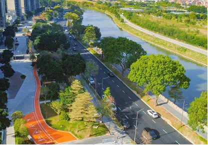 东莞市南城滨河活力公园正在逐渐从蓝图变为现实,东莞市中心又新添一处高颜值、高活力的休闲新地标。南城对原有的密植绿化带、闲置空间进行了科学的梳理与重塑,把林下休闲的荫凉、沿河开阔的视野重新交回给市民。建筑前区转化为功能复合、面向全龄人群的“共享空间”,市民在林下漫步可以轻松欣赏周边景色,感受清风拂面的惬意。