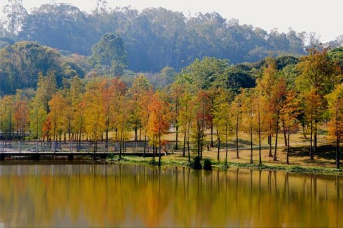 Lingnan: Beauty Beyond Borders| This winter, Dongguan is quietly transforming into a warm, Maillard-style oil painting. Across the city, bald cypress trees have slipped into their winter-only reds, mirrored by rippling water and set alongside historic architecture and the modern CBD skyline—scenes that are quickly taking over social media feeds. #SplendidLingnan