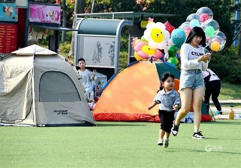 蒹葭白鹭,秋水长空。假日的第六天,在胶州少海湿地公园,观海新闻记者看到,很多市民驱车赶到这里,从车上卸下帐篷,搭建在公园孔子塑像下面的人造草坪上,或湖上泛舟,或公园骑车,又或围坐在帐篷附近聊天、嬉戏,让温柔的秋风从脸上拂过,静静地感受自然之美。(青岛日报观海新闻记者 王雷 摄影报道)