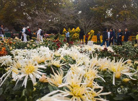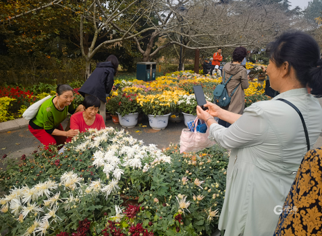 这两天路过中山公园的市民会惊喜地发现,中山公园又开始一年一度的菊花展布展了,布展的工作现场并没有阻挡市民喜爱菊花的脚步,有很多市民游客在中山公园已经盛开的菊花旁打卡留念。