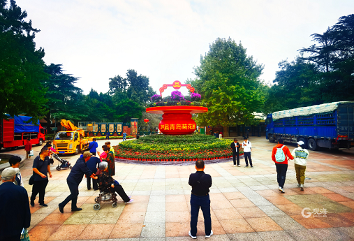 据布展的工作人员介绍,今年的菊花展将在本周末开幕,为期半个月。(青岛日报/观海新闻记者 王雷 摄影报道)