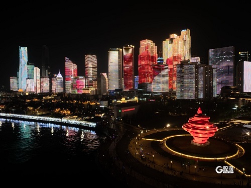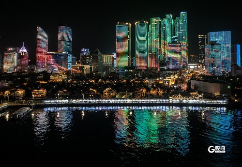 4月30日晚,浮山湾“魅力青岛”主题灯光秀进行试播。“魅力青岛”主题灯光秀分三个篇章,通过璀璨光影展现城市风光、海洋文化、科技经贸等发展成就与城市愿景,多方位展示青岛开放活力、精彩宜人的独特魅力。5月1日至5日19:40-21:30,“魅力青岛”主题灯光秀将与其他青岛风光主题等灯光秀编组循环播放,为市民游客提供一场视觉盛宴。(青岛日报/观海新闻记者 刘栋 摄影报道)