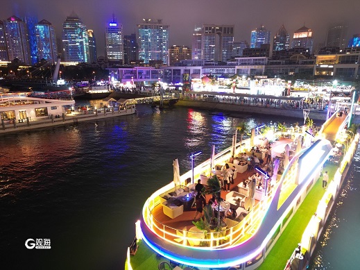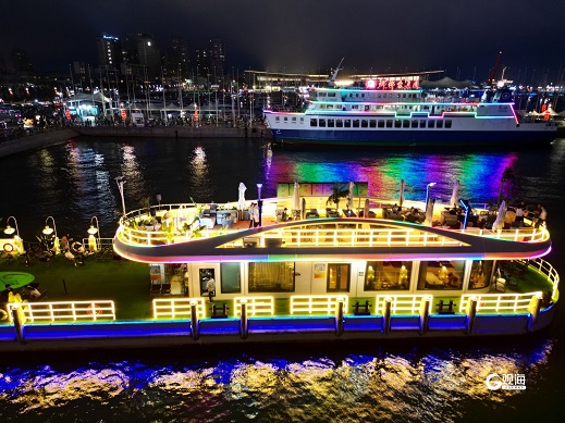 目之所及,奥帆帆码头前,等候夜游浮山湾的游客排起长队,岸边的文创店、美食街区更是人头攒动,欢声笑语不断。(青岛日报/观海新闻记者 王雷 摄影报道)