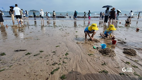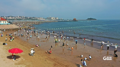 随着盛夏时节的到来,青岛这座美丽的海滨城市再次成为国内外游客避暑纳凉的热门选择,各大海水浴场也迎来了一年中最为热闹的时刻。观海新闻记者在第一、第六海水浴场看到,“下饺子”经典场景再现。人们身着各式各样的泳装,或悠闲地漫步在浅滩,或畅快地扎入海中戏水,尽情释放着夏日的激情与活力。沙滩成了孩子们的游乐场,他们手捧小桶、小铲,专心致志地挖掘着属于自己的“宝藏”,欢声笑语充满了每一个角落。进入三伏天后,一幅生动的夏日画卷正在徐徐展开……(青岛日报/观海新闻记者 刘栋 摄影报道)