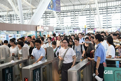记者了解到,为应对暑运大客流,车站增加北京、上海、济南、鲁西南等方向临时旅客列车、高峰线20对,恢复淡季停运列车开车6对,最大限度保证运能。同时车站立足广大旅客实际需求,不断升级车站客运设施设备,优化旅客进站安检通道布局,使旅客进站流线更加顺畅,推出智能安检系统,让安检处置更加快捷。(青岛日报/观海新闻记者 刘栋 摄影报道)