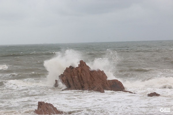 ?受气旋影响,从昨天夜间开始,青岛迎来一场强降水过程,普遍出现大到暴雨局部大暴雨。受其影响,青岛沿海风大浪高,海浪翻滚。今天上午,因风浪较大,青岛金沙滩海水浴场已拉起警戒线。海面波浪滚滚,不断拍打着岸边礁石,激起数米高的浪花,十分壮观。同时存在一定危险性,提醒市民游客远观海浪,注意安全。