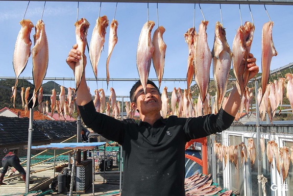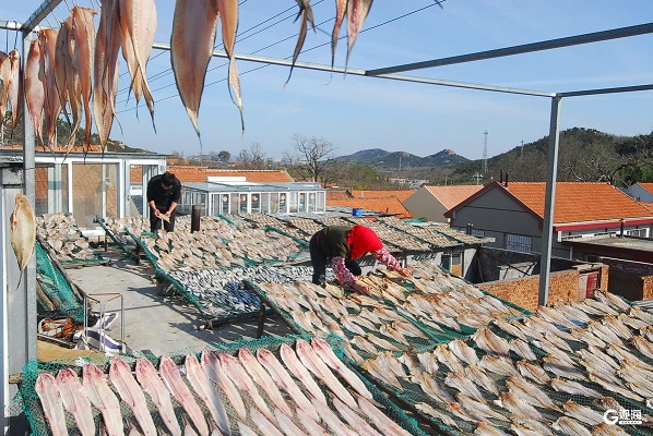 密密麻麻晾晒着的鱼干,形成了一道独特的亮丽风景线。“现在正是甜晒鱼销售的旺季,每天要加工1000多斤甜晒鱼。”55岁的村民孙成杰从事甜晒鱼加工已经30多年。他介绍,进入冬季以后,越到天晴低温的天气越忙碌,一天有10多个小时都在加工甜晒鱼。