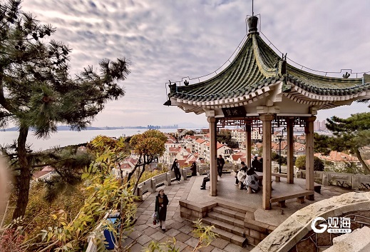 永恒的松柏绿叶,夹杂着山上其他树木或黄或红的叶子,让本该萧瑟的季节,色彩仍然绚丽。登上山顶可以俯瞰青岛冬天最美的海景,不远处是第一海水浴场,淡金色的沙滩,宝蓝色的大海,微微的波浪,衬着深深的宁静,太阳的光芒洒向波光流转的海面。蔚蓝色的天空,高远,透明,清风流淌,白云柔软。(青岛日报/观海新闻记者 王雷 摄影报道)