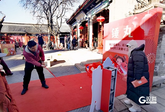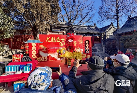 大年初一,第二十六届新正民俗文化庙会在青岛天后宫举行。早上9:30,天后宫里已经热闹非凡,各种非遗项目齐聚在此,吸引了众多市民游客前来体验游玩。