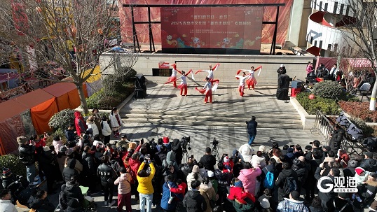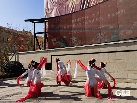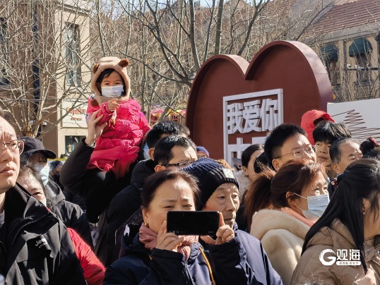 大年初一上午,在大鲍岛历史街区,青岛市文化馆文化志愿服务小分队携带一个个精心准备的节目,给岛城市民、游客拜大年。演出一开始,优美的古典舞吸引了前来老城区游览的市民和外地游客,随即歌曲《好运全都来》吸引现场观众拍手、合唱。很快市民、游客们被这种氛围感染,纷纷拍照留念。随着变脸、表演的精彩上演,参与的市民游客越来越多,全场嗨到了高潮。