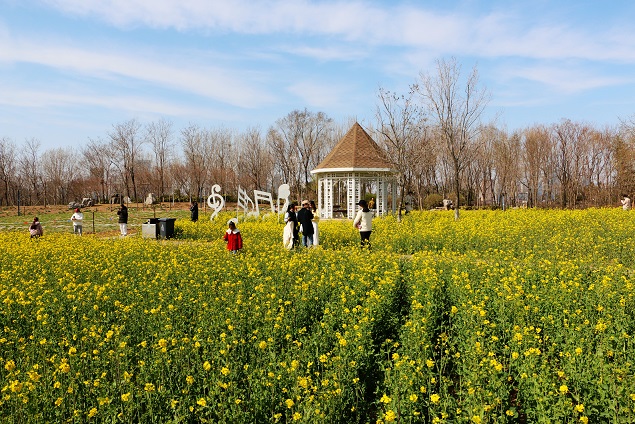微风拂过,花海泛起千层金浪,花枝摇曳,簌簌低语。花间蝶舞蜂忙,它们沉醉于这甜润的芬芳。游客置身花海,满心满眼尽是春的蓬勃,只这一片花海,便盛下了整个春天的烂漫。(青岛日报/观海新闻记者 梁超 摄影报道)