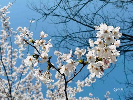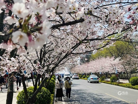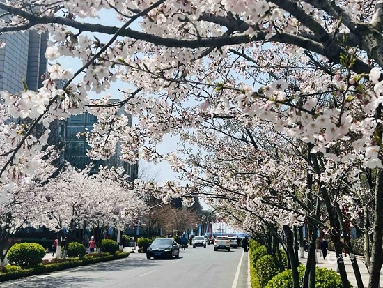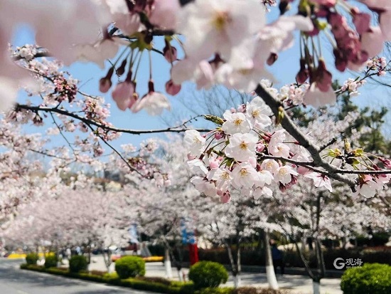 春光明媚,百花争艳,最美不过四月天。今天,青岛奥帆中心外百余米的新会路道路两旁樱花盛开,仿佛是一条直通大海的樱花大道。众多市民、游客在此驻足拍照,记录下春天里的美好瞬间。(青岛日报/观海新闻记者 王世锋)