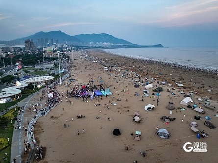 周末傍晚,青岛石老人海水浴场热闹非凡、人头攒动。咖啡吧、书吧、沙滩酒店等新兴时尚业态巧妙融入服务场景,为游客带来别样体验。与此同时,音乐节等活动火热上演,动感旋律回荡在上空,让整片沙滩洋溢着蓬勃活力。石老人海水浴场正以独特的魅力,成为市民游客夜生活的热门打卡地。(青岛日报/观海新闻记者 刘栋 文/图)