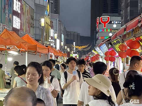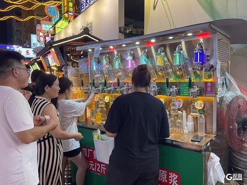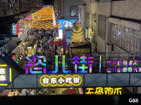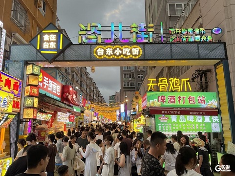 夏夜,台东步行街人声鼎沸,市民游客在小吃街巷寻味、品鲜、相聚,麦芽香、烟火气在巷子间传开。(青岛日报/观海新闻记者 余瑞新 实习生 车芳如)