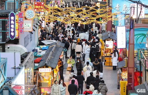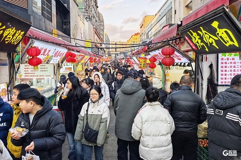 随着元旦假期的到来,台东步行街上人头攒动。傍晚时分,许多市民和游客纷沓而来,开启了元旦假期的逛吃模式。(青岛日报/观海新闻记者 韩星 文/图 责任编辑 | 王亚楠)