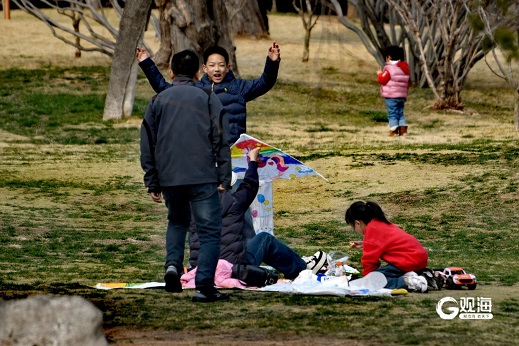 不远处的百花苑同样是一派热闹景象。这里草木返青,吸引了大量市民前来踏青。开阔的草坪上,孩子们追逐嬉戏,风筝在蓝天上翱翔;家人们在树荫下铺开野餐垫,享受着惬意的午后时光。享受着春日带来的无限生机与美好。(青岛日报/观海新闻记者 王雷 文/图)