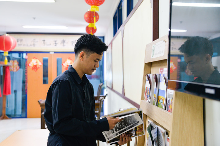 在阿拉扎大学孔子学院内,一名学生在阅读中文杂志。新华社记者 徐钦 摄