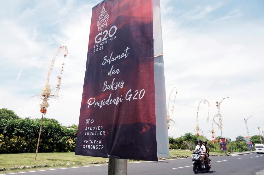 印着此次峰会主题“共同复苏、强劲复苏”和G20标识等字样的旗帜、标识,装点在巴厘岛各个会场和街头巷尾,预示这个重要的多边会议即将拉开帷幕。