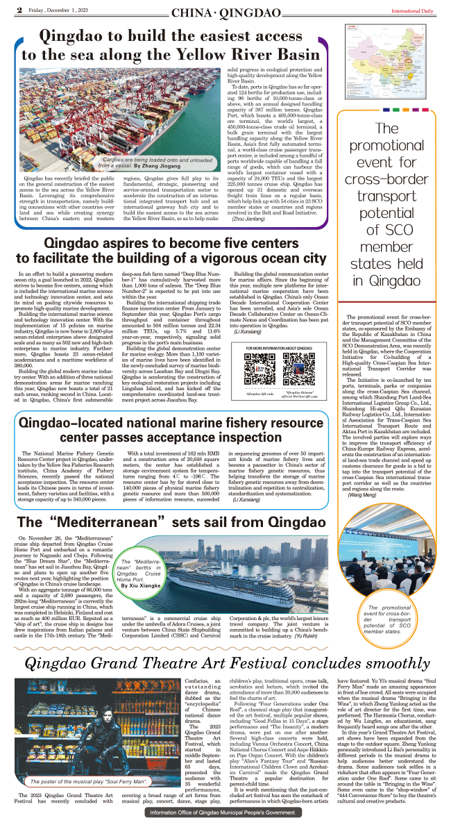 12/1-International Daily News CHINA.QINGDAO 2023/12/1 source: International daily Print
