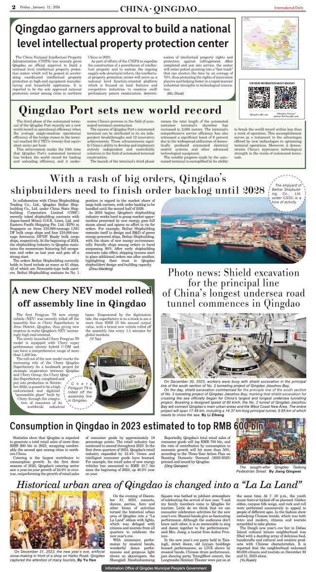 1/12-International Daily News CHINA.QINGDAO 2024/1/12 source: International daily Print