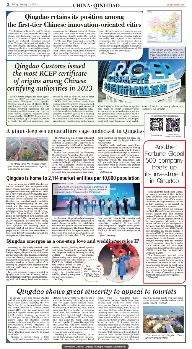 1/19-International Daily News CHINA.QINGDAO 2024/1/19 source: International daily Print