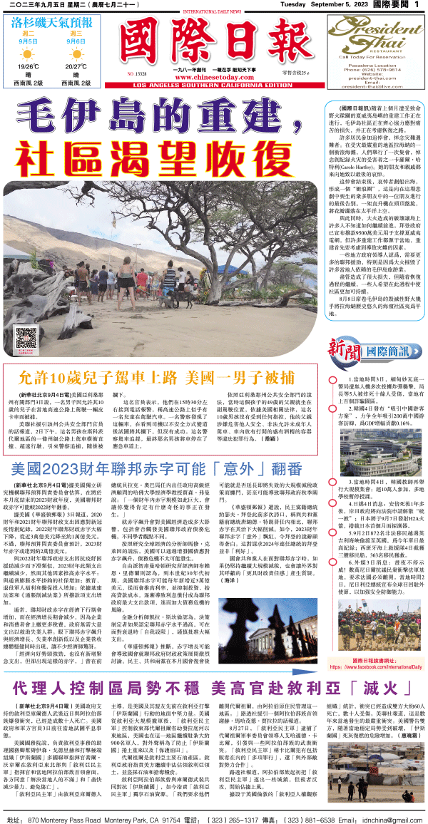 5日國際日報1-國際要聞 发布日期:2023/9/5 来源:國際日報 打印