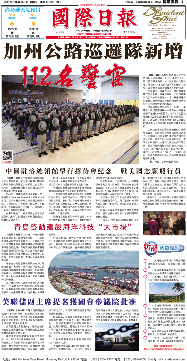 8日國際日報1-國際要聞 发布日期:2023/9/8 来源:國際日報 打印