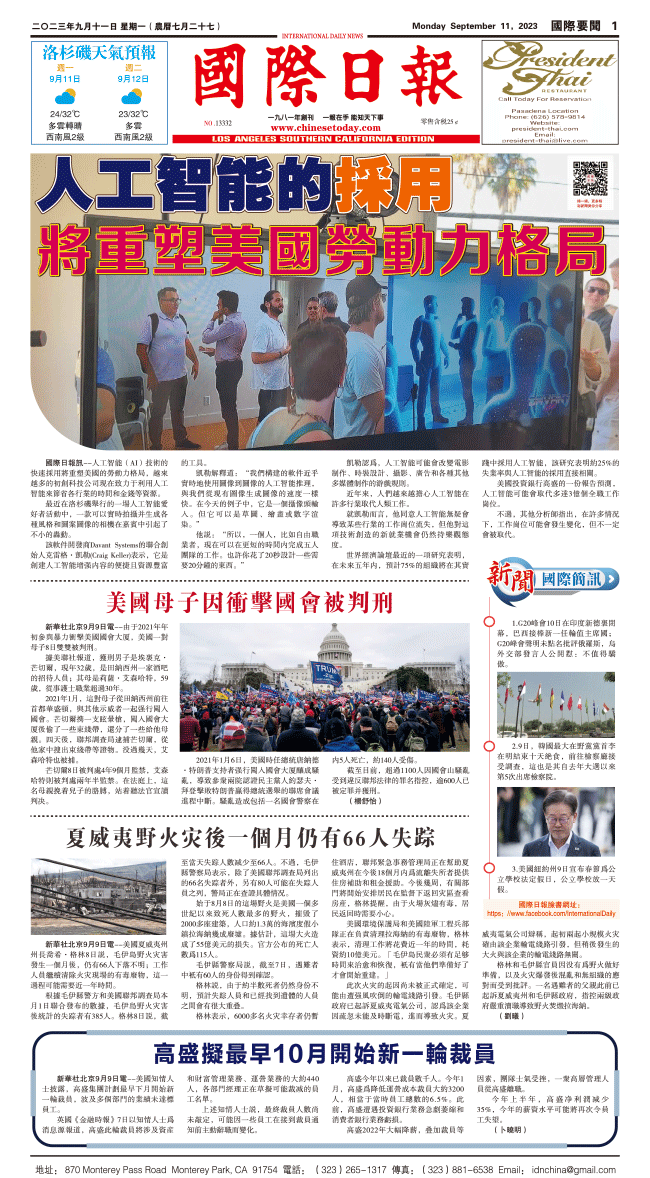11日國際日報1-國際要聞 发布日期:2023/9/11 来源:國際日報 打印
