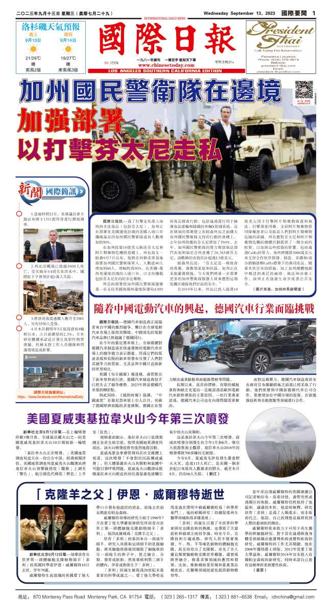 13日國際日報1-國際要聞 发布日期:2023/9/13 来源:國際日報 打印
