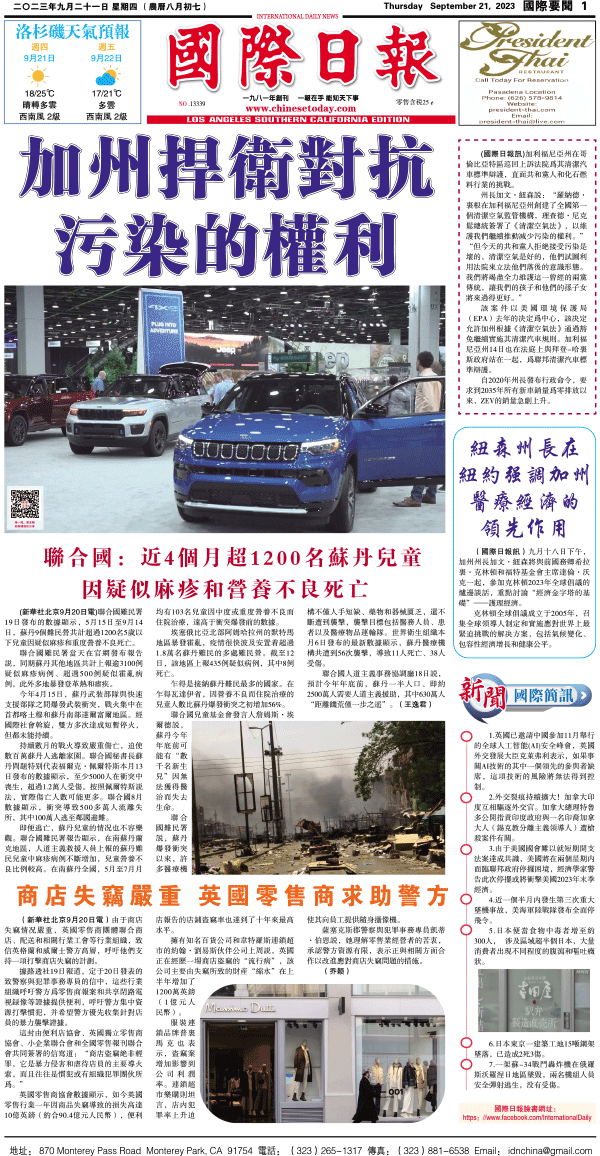 21日國際日報1-國際要聞 发布日期:2023/9/21 来源:國際日報 打印