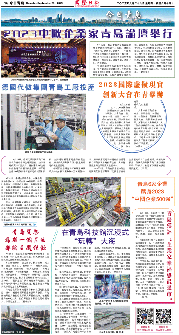 28日國際日報16-今日青島 发布日期:2023/9/28 来源:國際日報 打印