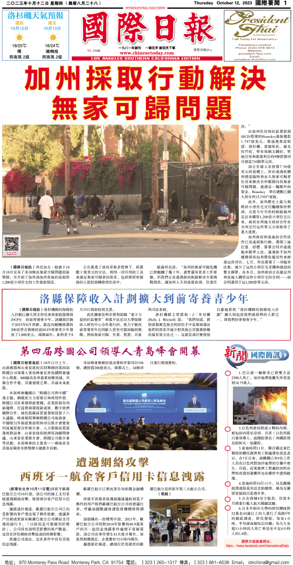 12日國際日報1-國際要聞 发布日期:2023/10/13 来源:國際日報 打印