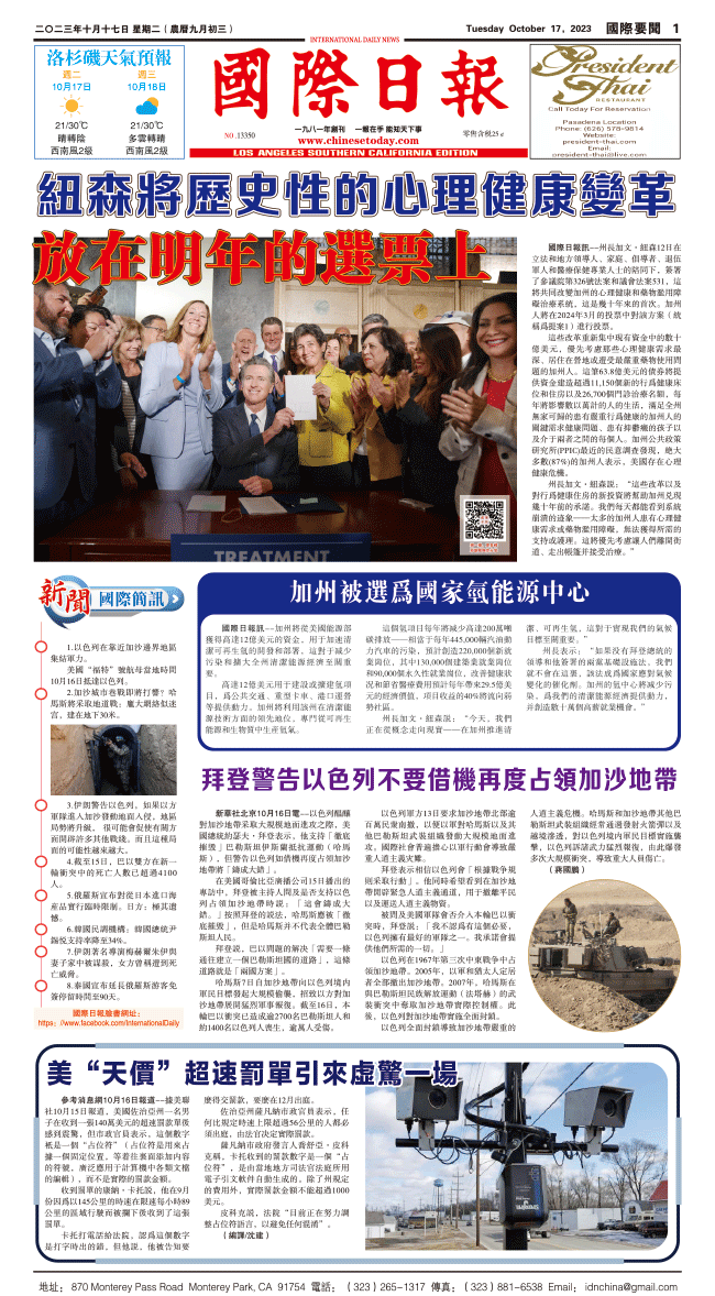 17日國際日報1-國際要聞 发布日期:2023/10/17 来源:國際日報 打印