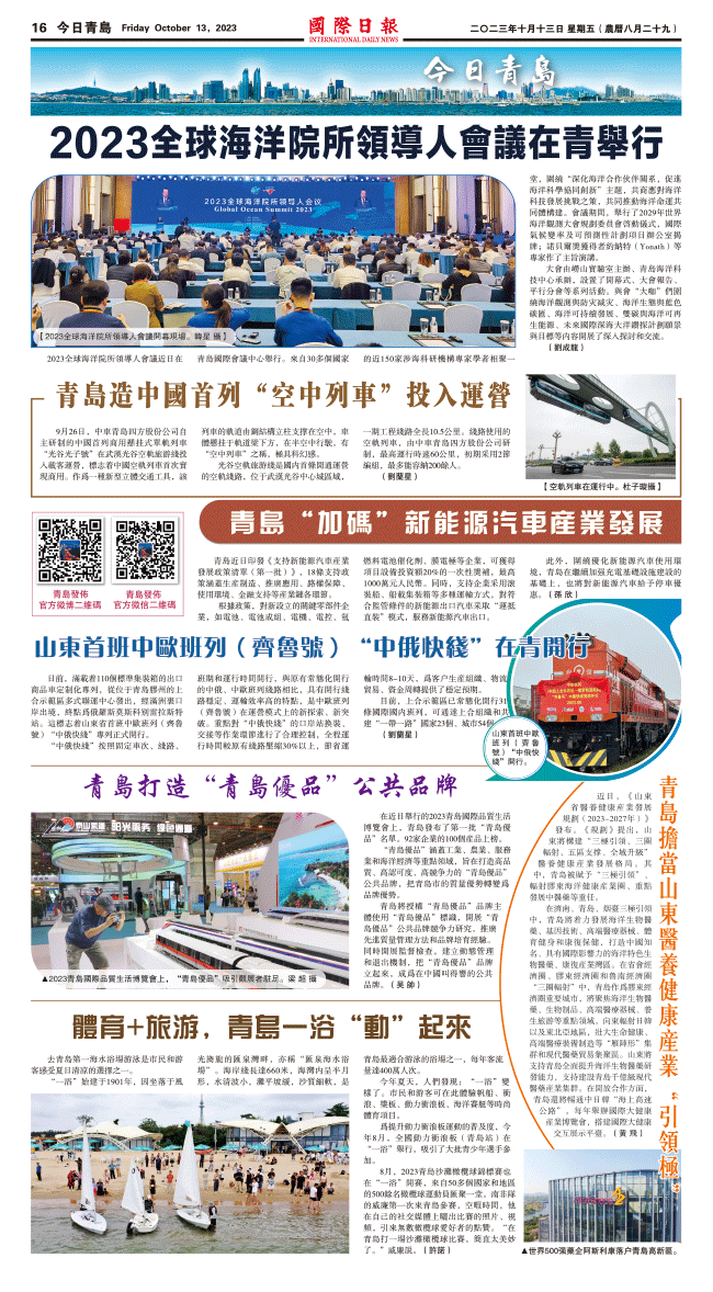 13日國際日報16-今日青島 发布日期:2023/10/17 来源:國際日報 打印