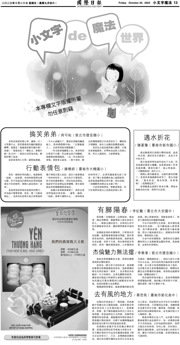 20日國際日報13-小文字魔法 发布日期:2023/10/20 来源:國際日報 打印