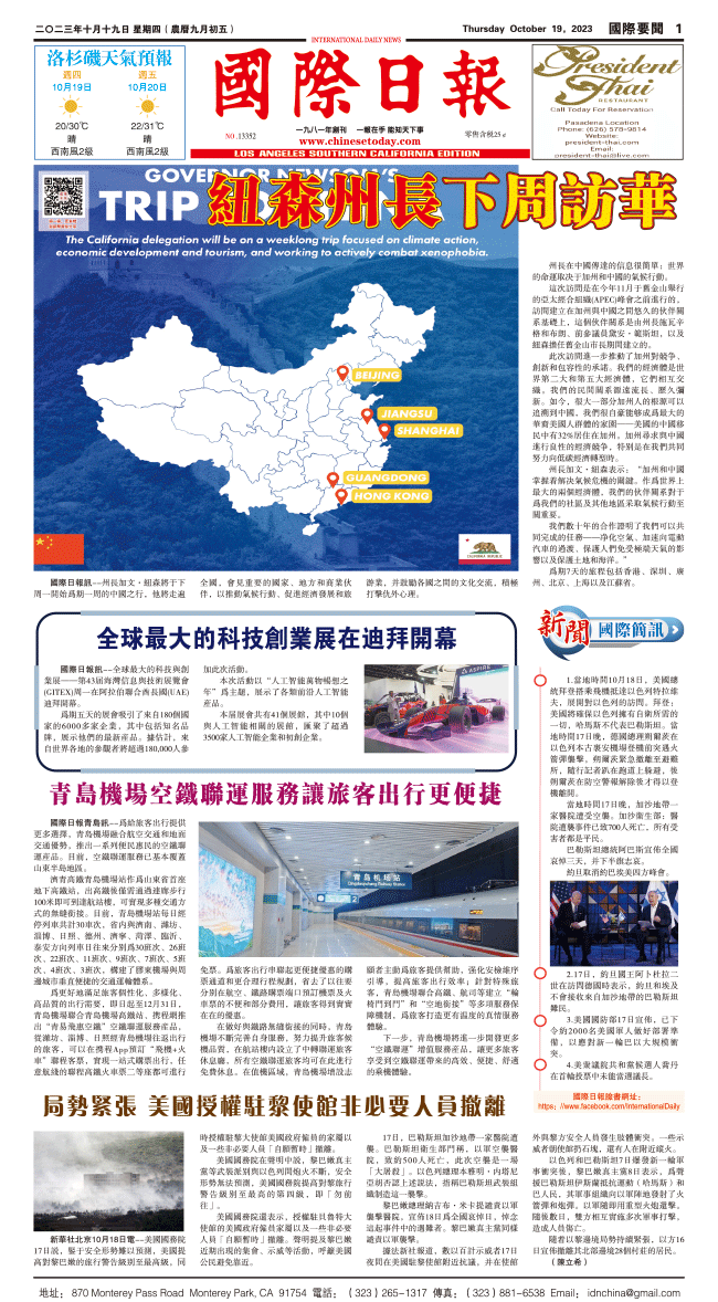 19日國際日報1-國際要聞 发布日期:2023/10/27 来源:國際日報 打印
