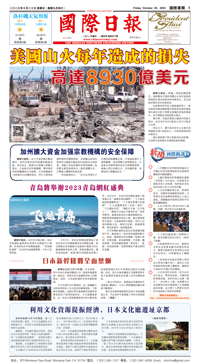 20日國際日報1-國際要聞 发布日期:2023/10/27 来源:國際日報 打印