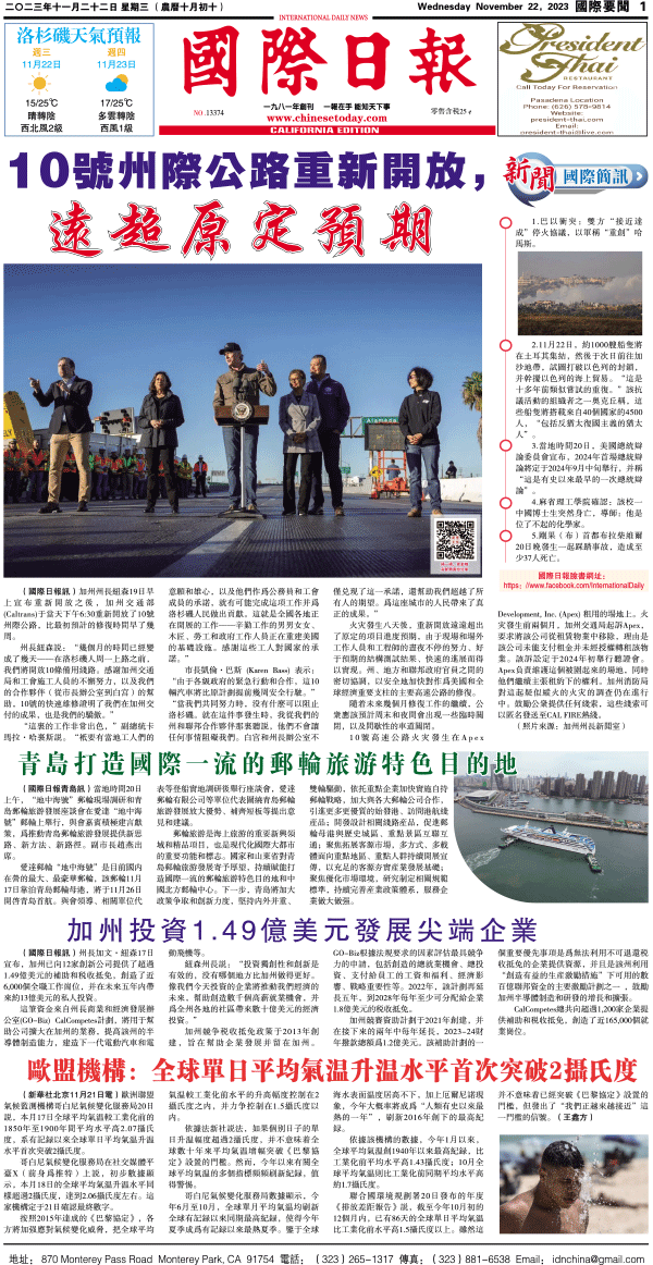 22日國際日報1-國際要聞 发布日期:2023/11/22 来源:國際日報 打印