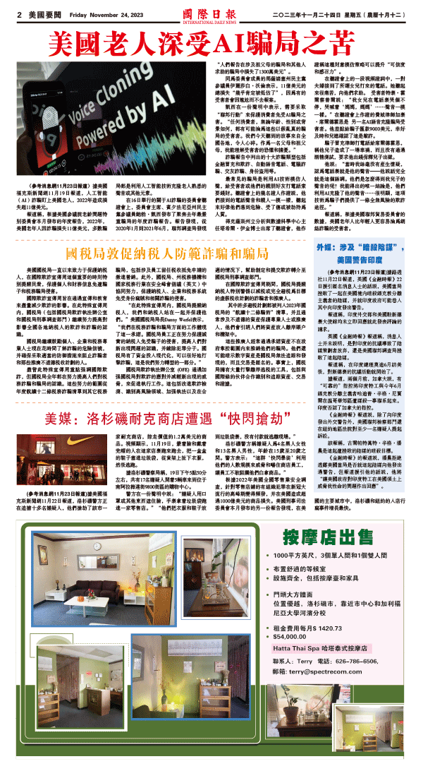 24日國際日報2-美國要聞 发布日期:2023/11/24 来源: 打印