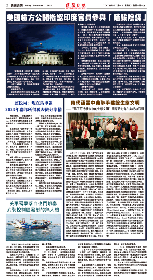 1日國際日報2-美國要聞 发布日期:2023/12/1 来源: 打印