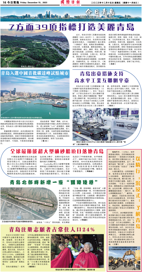 15日國際日報16-今日青島 发布日期:2023/12/18 来源:國際日報 打印