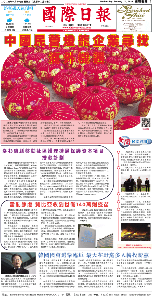 17日國際日報1-國際要聞 发布日期:2024/1/17 来源:國際日報 打印