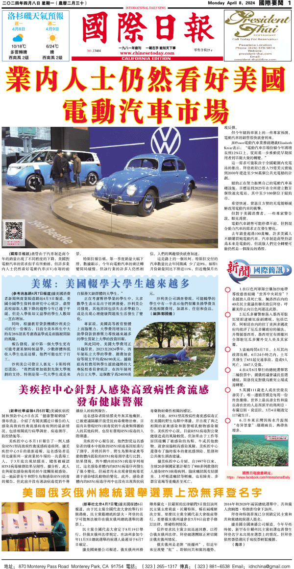 8日國際日報1-國際要聞 发布日期:2024/4/8 来源:國際日報 打印