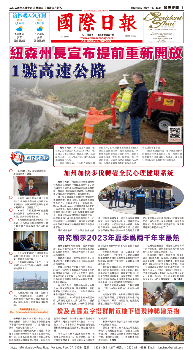 16日國際日報1-國際要聞 发布日期:2024/5/16 来源:國際日報 打印