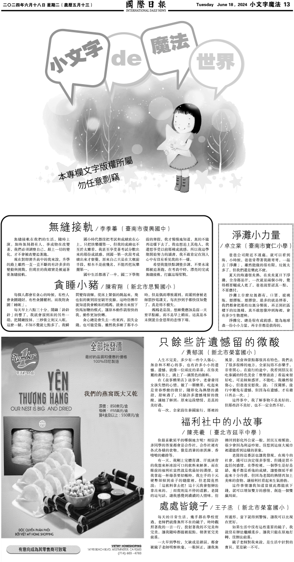 18日國際日報13-小文字魔法 发布日期:2024/6/18 来源:國際日報 打印