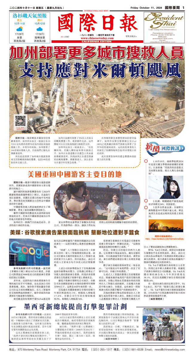 11日國際日報1-國際要聞 发布日期:2024/10/11 来源:國際日報 打印