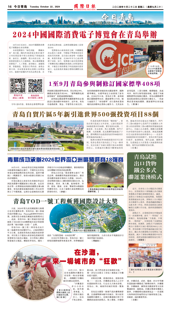 22日國際日報16-今日青島 发布日期:2024/10/22 来源:國際日報 打印